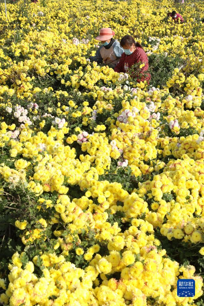 11月15日,焦作市溫縣祥云鎮大尚村農民在采收懷菊花。