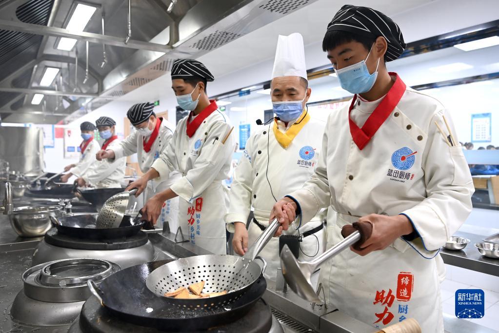 藍田廚師學(xué)校的學(xué)生在教師指導下學(xué)習中式烹調(11月15日攝)。