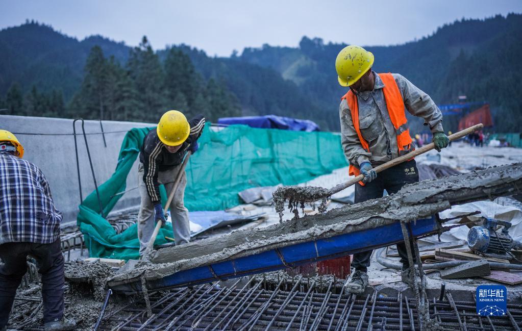 工人在雷榕高速平永互通進(jìn)行施工(11月15日攝)。
