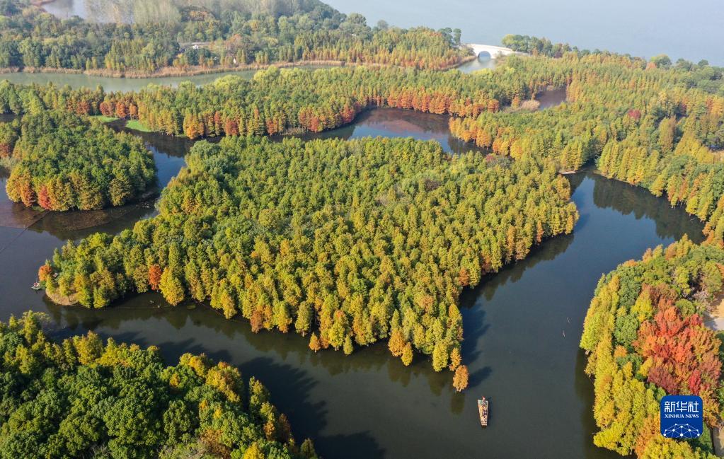 尚湖國家城市濕地公園景色(11月15日攝,無(wú)人機照片)。 新華社記者 楊磊 攝