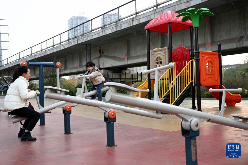 11月15日,居民在銅陵市一處“口袋公園”內休閑。