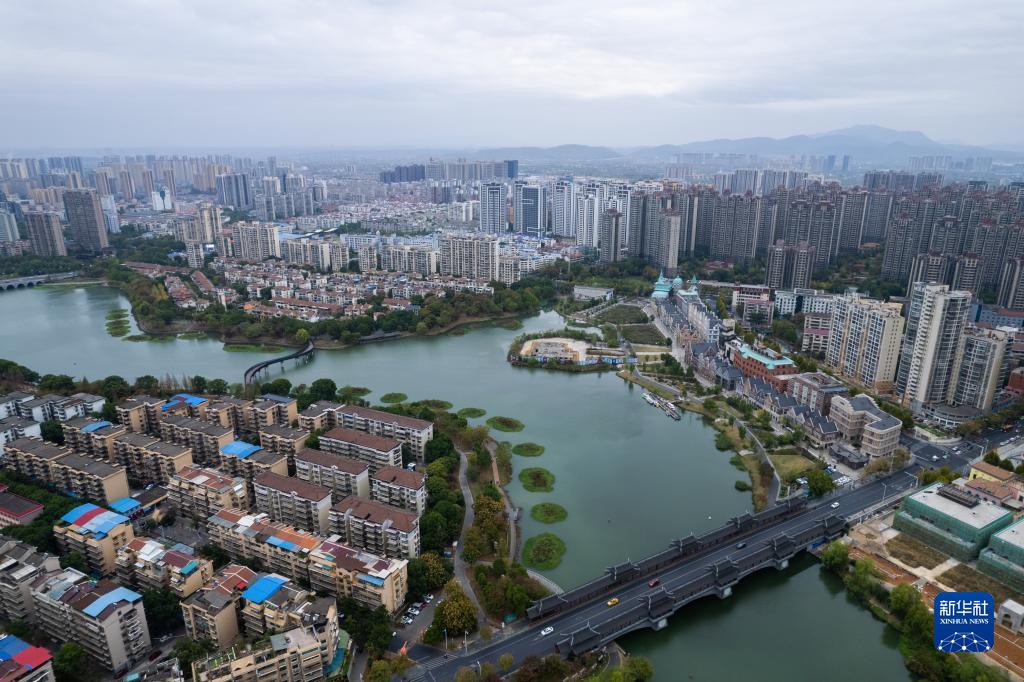 這是11月12日在常德城區拍攝的穿紫河生態(tài)治理工程及周邊景色(無(wú)人機照片)。 新華社記者陳思汗攝