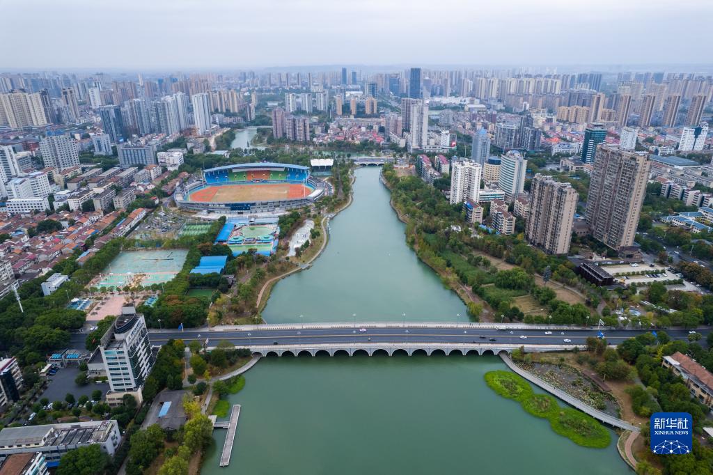 這是11月12日在常德城區拍攝的穿紫河生態(tài)治理工程及周邊景色(無(wú)人機照片)。 新華社記者陳思汗攝