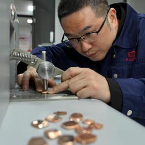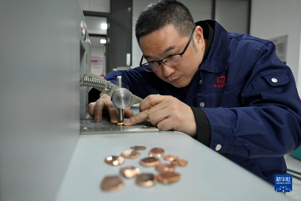 11月16日,在位于安徽省銅陵市的銅陵精達特種電磁線(xiàn)股份有限公司實(shí)驗室,蘇保信操作直讀光譜儀分析銅原料的雜質(zhì)成分。