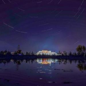 這是在拉薩市南山公園拍攝的以布達拉宮為前景的星軌照片(合成照片,11月15日攝)。
