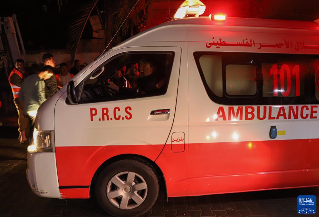 11月17日,一輛救護車(chē)前往加沙地帶杰巴利耶難民營(yíng)的火災現場(chǎng)。