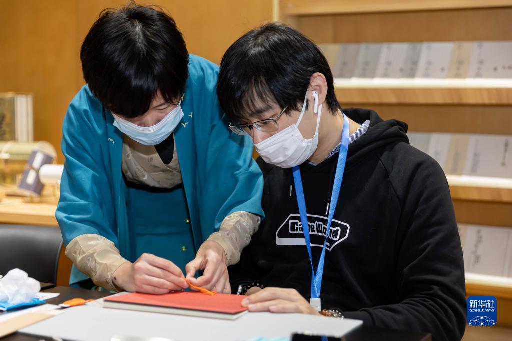 當日,“古今相映,樂(lè )創(chuàng )未來(lái)——非物質(zhì)文化遺產(chǎn)系列推廣項目”活動(dòng)在上海圖書(shū)館東館開(kāi)幕?;顒?dòng)現場(chǎng)邀請體驗者參與體驗“古籍修復”非遺技藝,讓人們感受傳統文化的魅力。新華社記者 王翔 攝