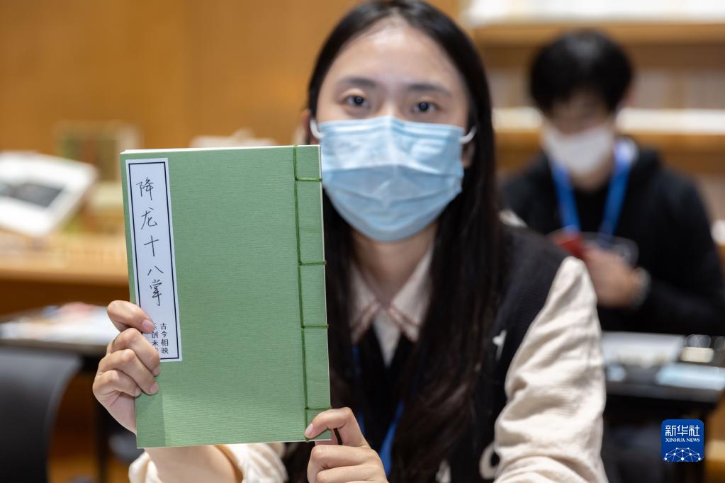 11月18日,在上海圖書(shū)館東館,體驗者展示制作好的書(shū)籍。