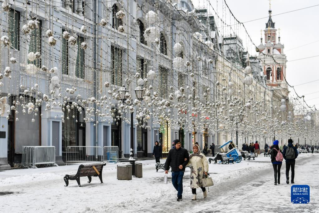 11月17日,俄羅斯首都莫斯科的市民走在雪地里。