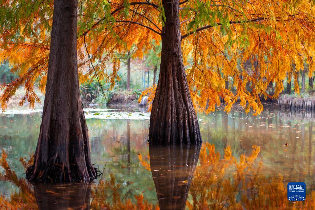 11月12日拍攝的南京明孝陵景區燕雀湖畔景色。
