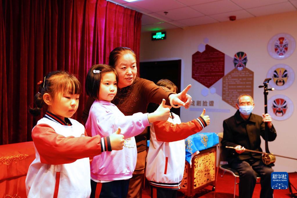 11月19日,在桓臺縣果里鎮伊家村鄉村“復興少年宮”,志愿者老師教孩子們學(xué)習呂劇。