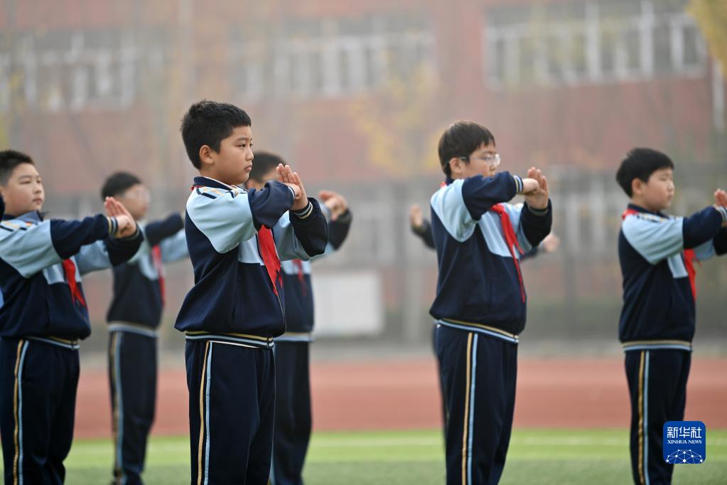 天津師范大學(xué)第三附屬小學(xué)的學(xué)生在練習武術(shù)(11月18日攝)。