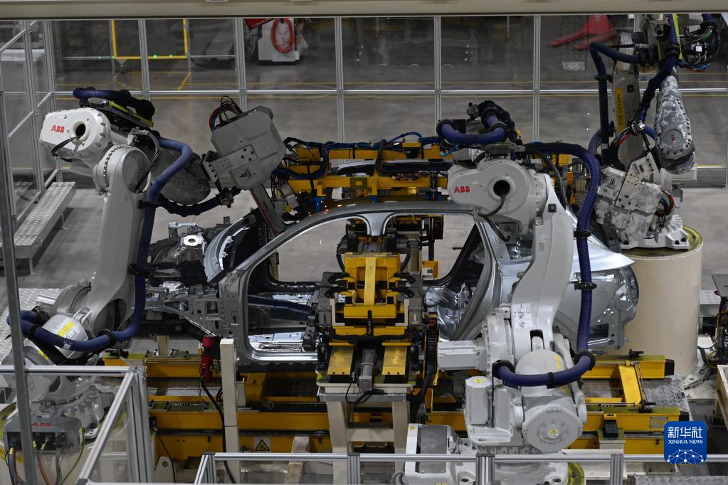 11月19日在領(lǐng)克汽車(chē)寧波梅山工廠(chǎng)拍攝的自動(dòng)化焊接線(xiàn)。