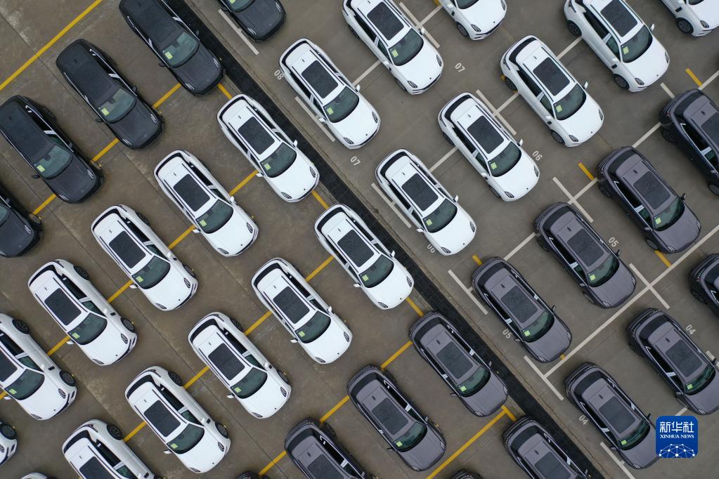 11月19日在領(lǐng)克汽車(chē)寧波梅山工廠(chǎng)拍攝的即將交付的領(lǐng)克09汽車(chē)(無(wú)人機照片)。