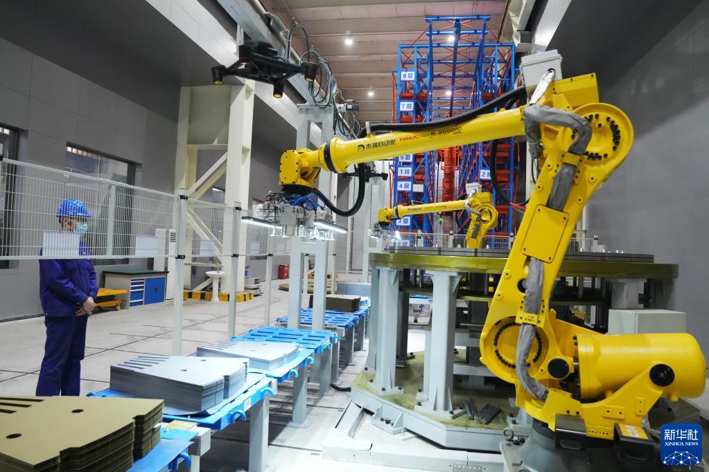 11月17日,在哈電集團哈爾濱電機廠(chǎng)有限責任公司的數字化智能示范車(chē)間,工人在觀(guān)察機械臂作業(yè)。