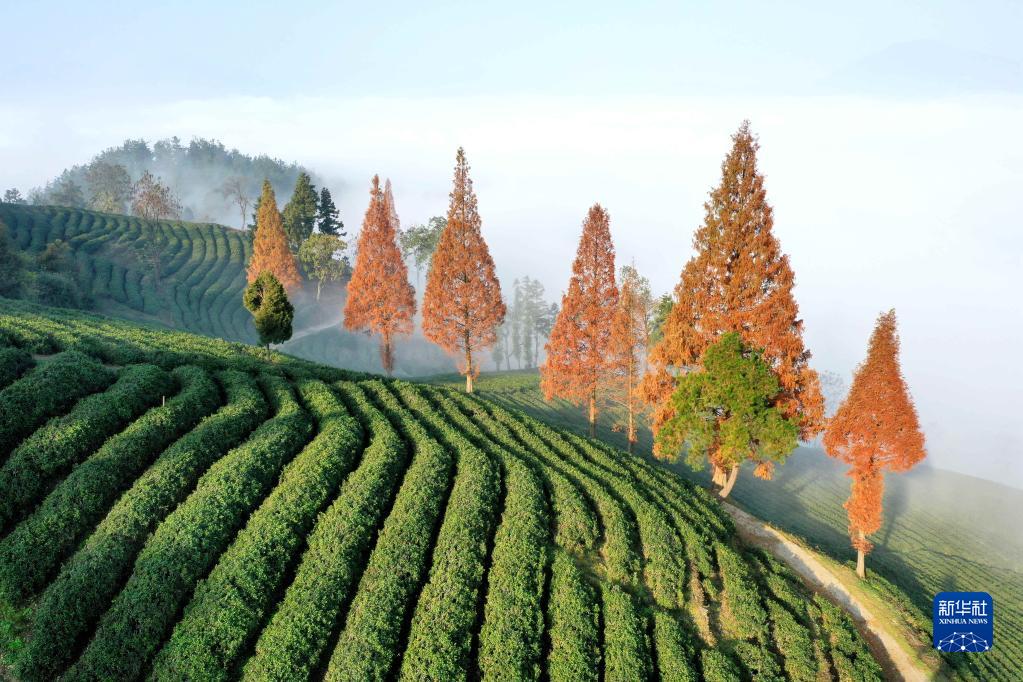 這是11月19日拍攝的湖北省襄陽(yáng)市??悼h一處茶園景色(無(wú)人機照片)。