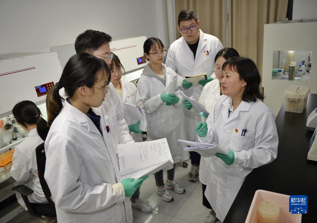 11月17日,羅懷容(右一)在西南醫科大學(xué)藥學(xué)院實(shí)驗室指導學(xué)生。