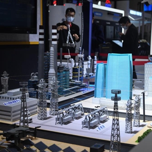 11月20日,參觀(guān)者在“2022中國5G+工業(yè)互聯(lián)網(wǎng)”成果展展廳參觀(guān)。