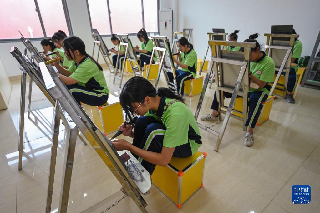 11月20日,聽(tīng)障學(xué)生在泉州市特殊教育學(xué)校聽(tīng)障職教大樓里上影雕課。