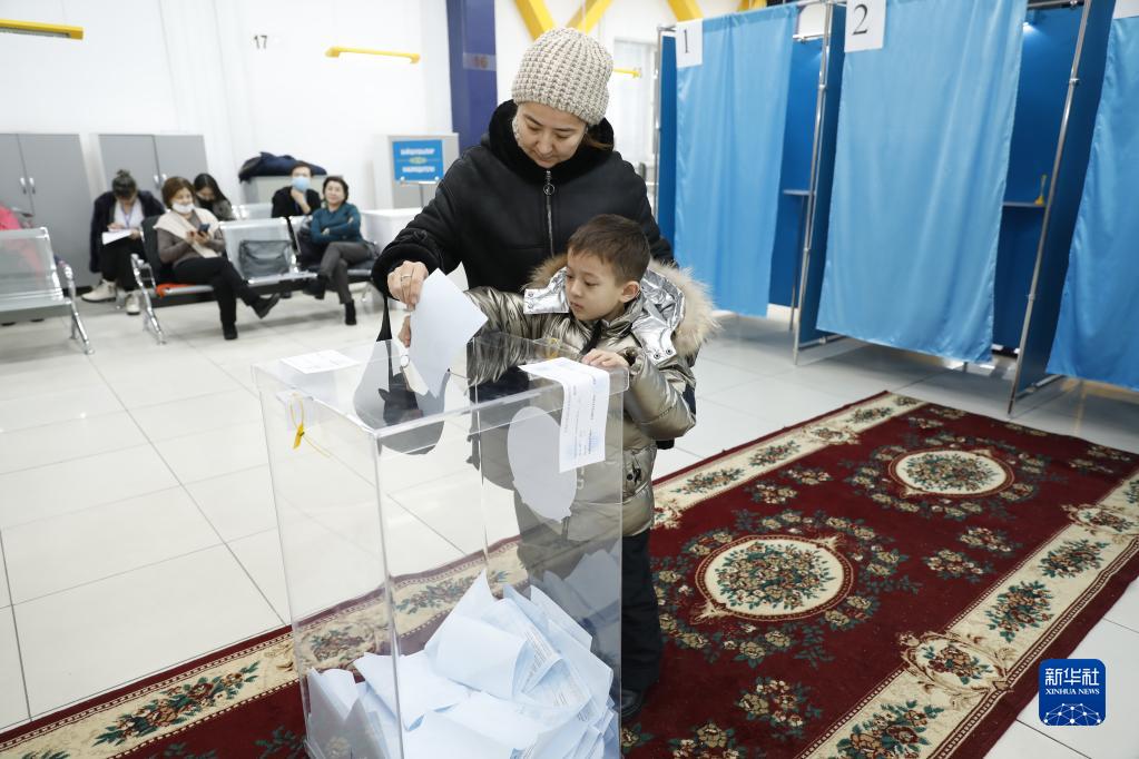 11月20日,選民在哈薩克斯坦阿斯塔納一處投票站投票。