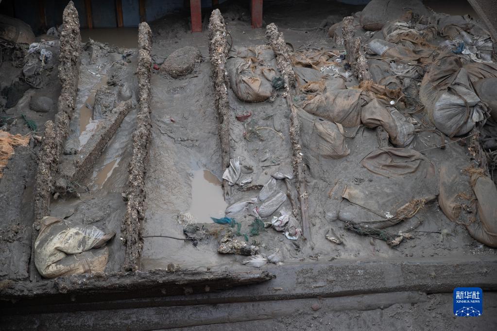 11月21日清晨拍攝的露出水面的古船船體局部。