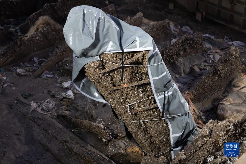 采用世界首創(chuàng )的“弧形梁非接觸文物整體遷移技術(shù)”, 我國迄今水下考古發(fā)現的體量最大的木質(zhì)沉船——長(cháng)江口二號古船21日在長(cháng)江口水域成功實(shí)施整體打撈。隨著(zhù)打撈進(jìn)展有序推進(jìn),21日清晨,長(cháng)江口二號古船船體已局部露出水面,初露真容。