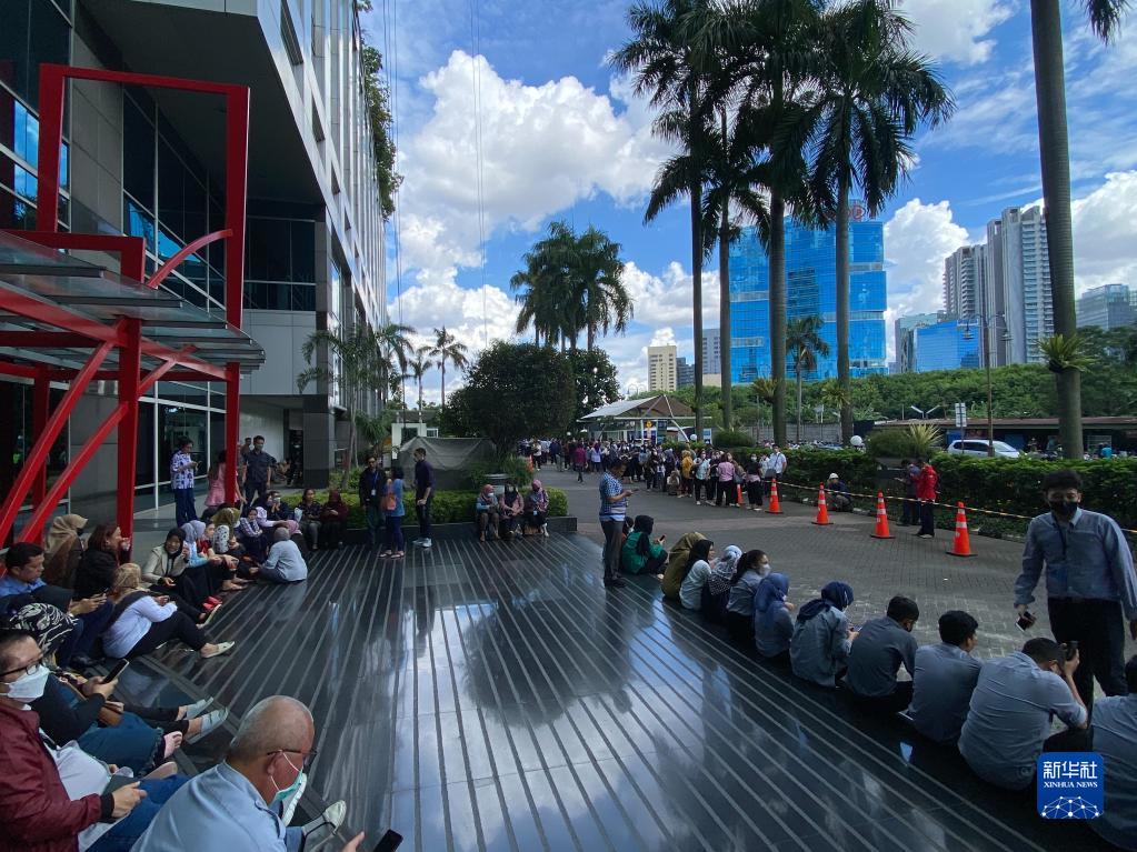 11月21日,在印度尼西亞雅加達,人們在戶(hù)外開(kāi)闊地帶避險(手機照片)。