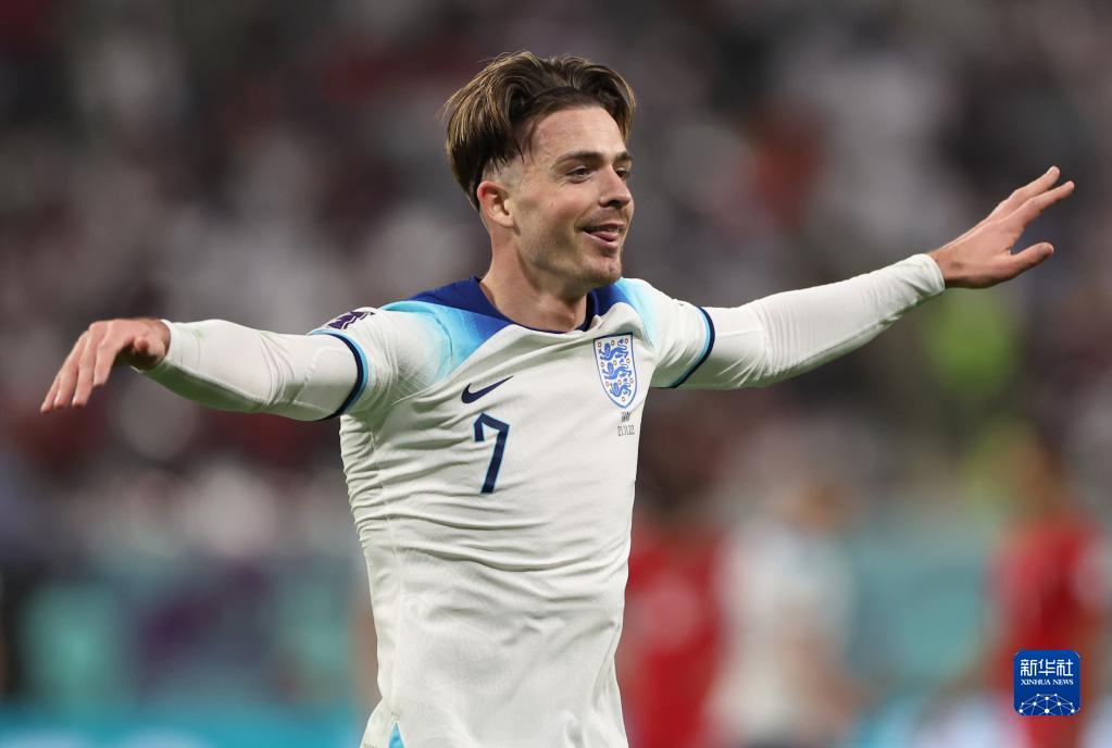 11月21日,英格蘭隊球員格拉利什慶祝進(jìn)球。