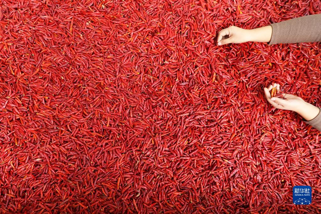 11月22日,河北省唐山市豐潤區姜家營(yíng)鄉姜家營(yíng)村農民在場(chǎng)院分揀辣椒。