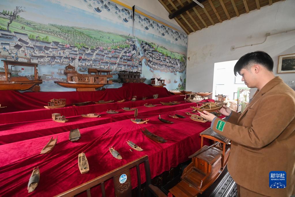 11月22日,游客參觀(guān)勝豐村菱瓏灣的船匠工藝館。