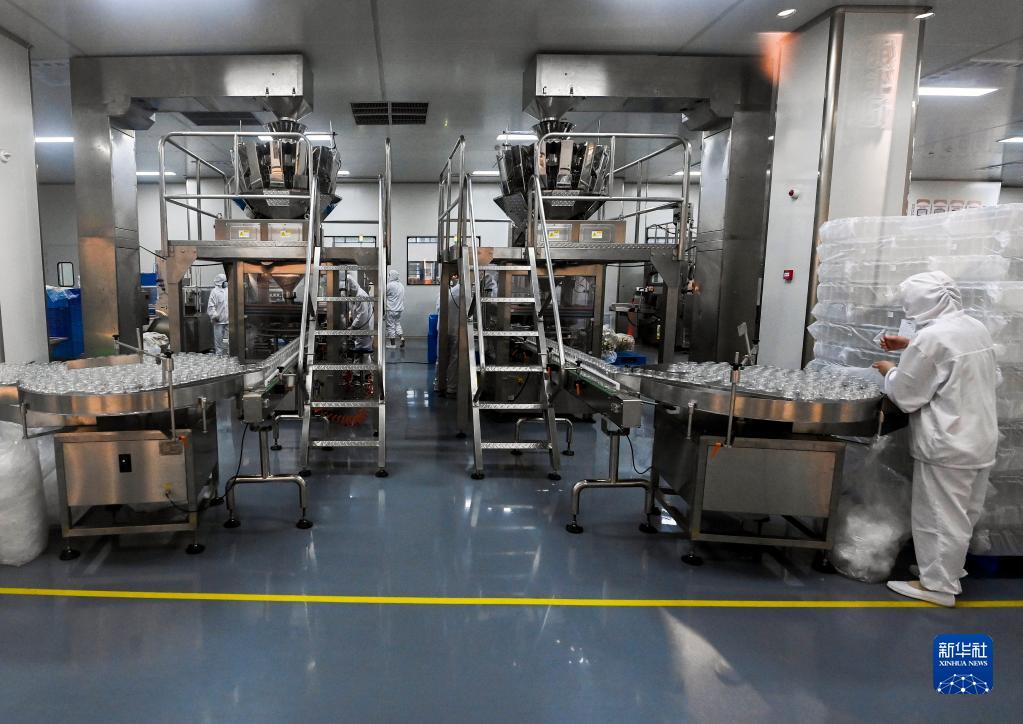 這是11月22日在杭州市臨安區龍崗鎮拍攝的一家現代化數字工廠(chǎng)的堅果炒貨自動(dòng)化生產(chǎn)車(chē)間。