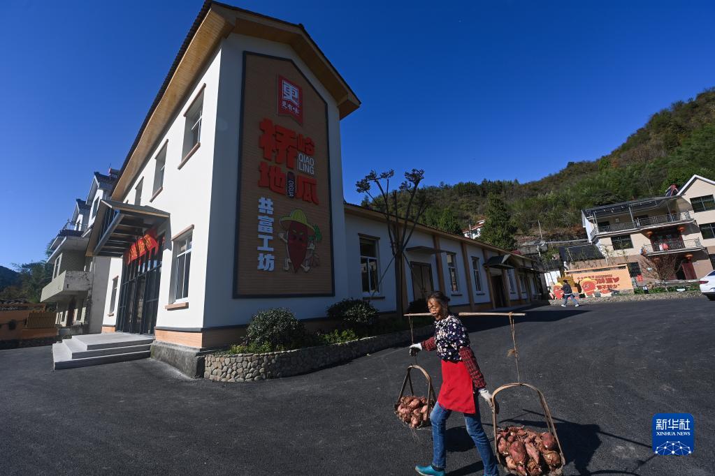 11月23日,村民把剛收獲的地瓜送到浙江省建德市更樓街道橋嶺村共富工坊里進(jìn)行統一加工。