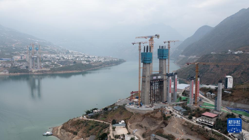 這是11月23日拍攝的卡哈洛金沙江大橋施工現場(chǎng)(無(wú)人機照片)。