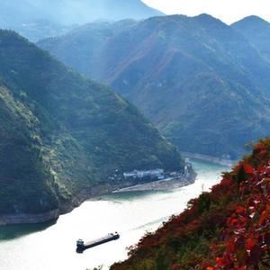初冬時(shí)節,長(cháng)江巫峽兩岸,紅葉爛漫,景色壯麗。