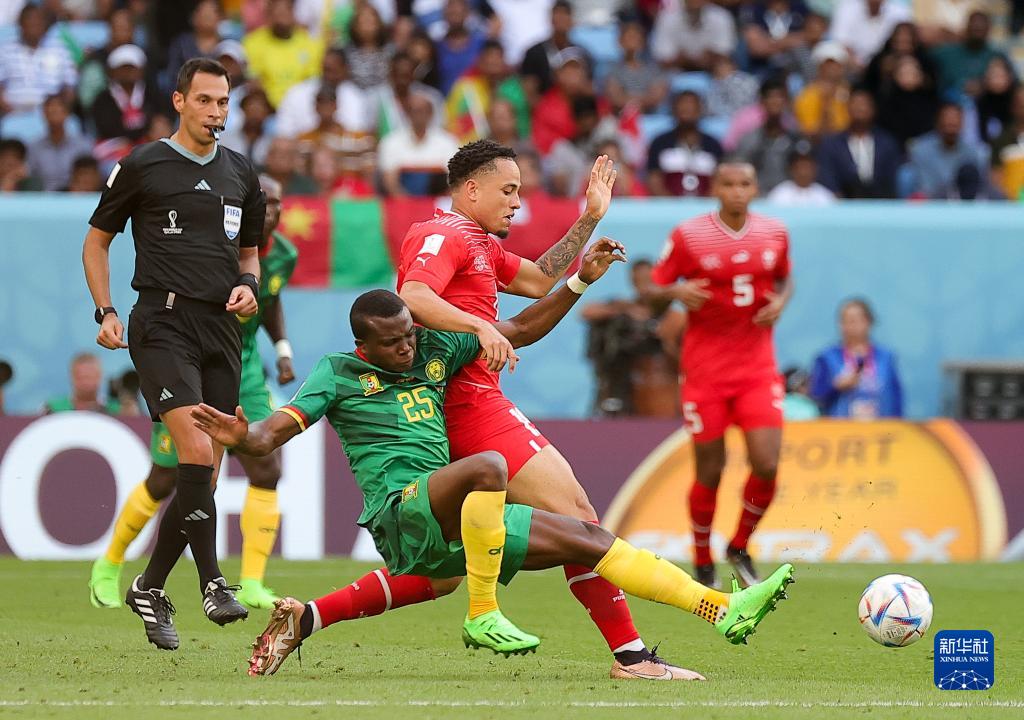當日,在卡塔爾沃克拉賈努布球場(chǎng)進(jìn)行的2022卡塔爾世界杯足球賽G組比賽中,瑞士隊以1比0戰勝喀麥隆隊。