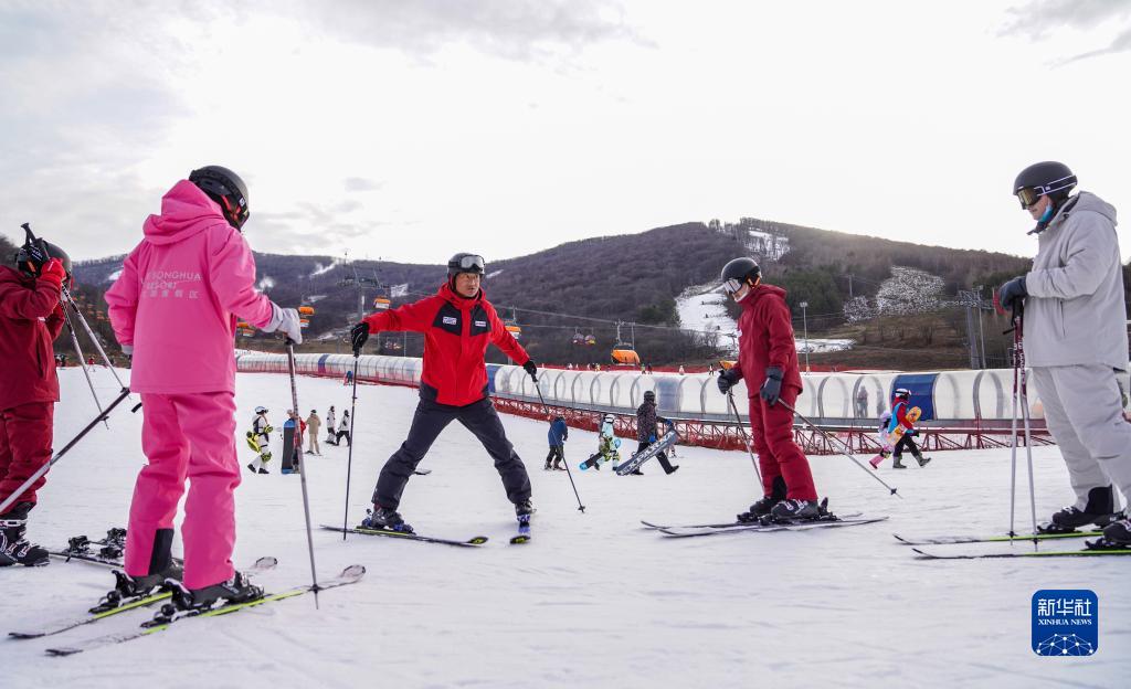 張占華(右三)在吉林市萬(wàn)科松花湖度假區進(jìn)行滑雪教學(xué)(11月20日攝)。38歲的張占華是吉林市永吉縣北大湖鎮官地村村民。2016年開(kāi)始,他利用冬天農閑時(shí)間來(lái)到吉林市萬(wàn)科松花湖度假區做滑雪教練。