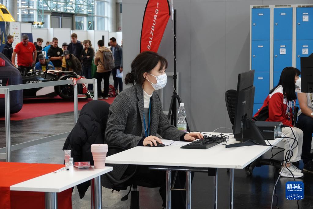 11月24日,來(lái)自上海第二工業(yè)大學(xué)的朱珂在奧地利薩爾茨堡參加2022年世界技能大賽特別賽奧地利賽區貨運代理項目比賽。