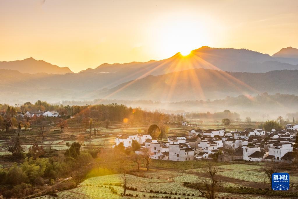 初冬時(shí)節,安徽省黃山市黟縣的徽派建筑與自然環(huán)境融為一體,盡顯詩(shī)畫(huà)般的美麗圖景。