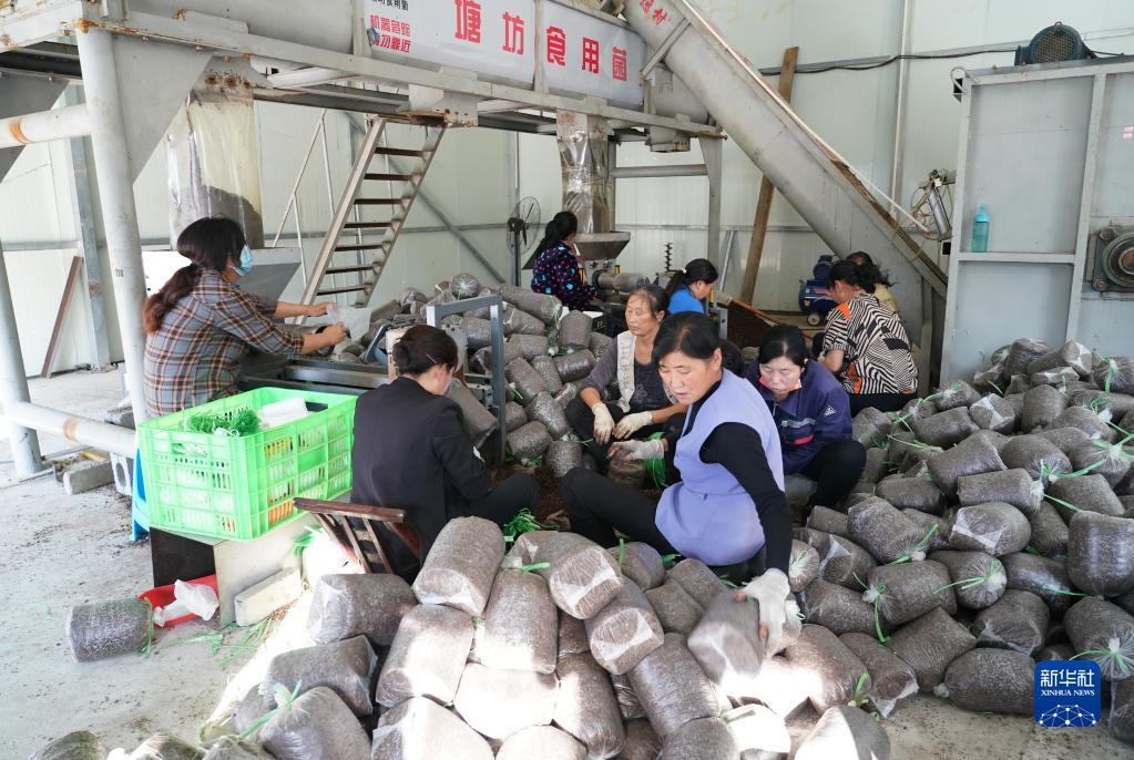 在陜西安康市平利縣廣佛鎮塘坊村一家食用菌企業(yè),由鎮上勞務(wù)公司招來(lái)的工人在工作(10月20日攝)。