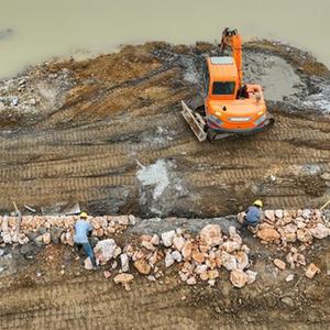 11月26日,施工人員在常寧市勝橋鎮河道綜合治理項目現場(chǎng)作業(yè)。