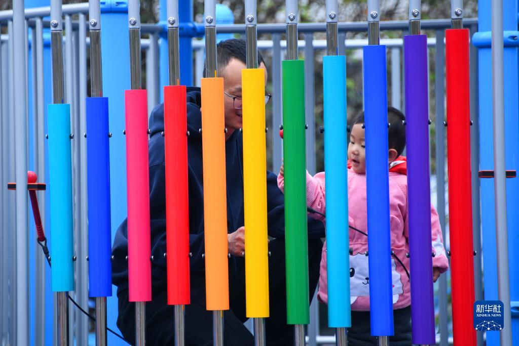 11月26日,小朋友在湖北省宣恩縣興隆街社區一處“口袋公園”游玩。
