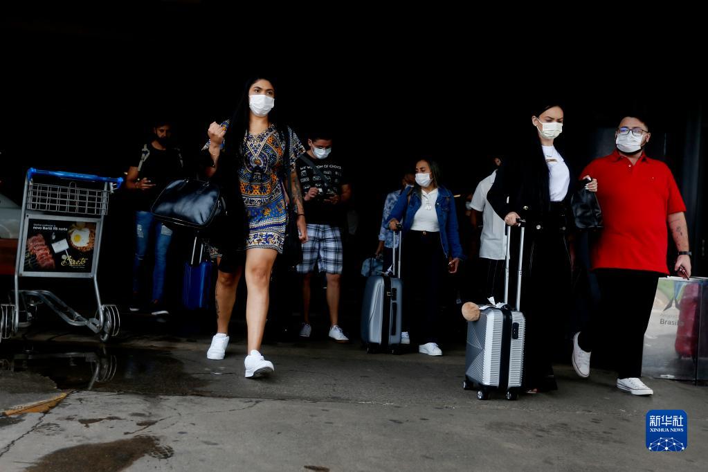 11月26日,旅客在巴西首都巴西利亞國際機場(chǎng)戴口罩出行。