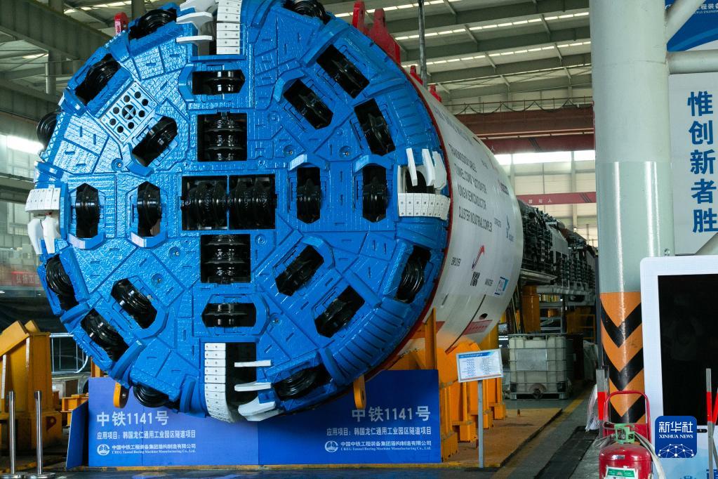 這是11月24日在中鐵裝備集團車(chē)間內拍攝的“中鐵1141號”掘進(jìn)機。該機即將出口韓國。