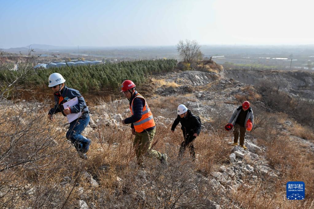 天津華北地質(zhì)勘查局地災防治工作組成員在天津市薊州區一座廢棄礦山上實(shí)地踏勘(11月25日攝)。