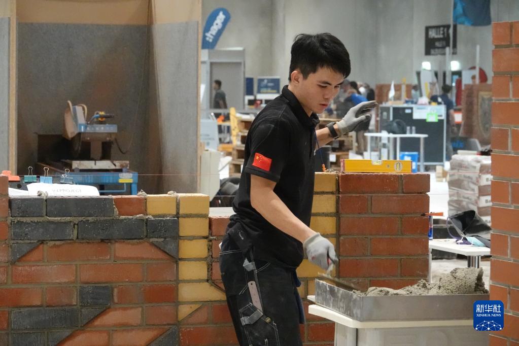 11月26日,來(lái)自中建五局高級技工學(xué)校的伍遠州在奧地利薩爾茨堡參加2022年世界技能大賽特別賽奧地利賽區砌筑項目比賽。