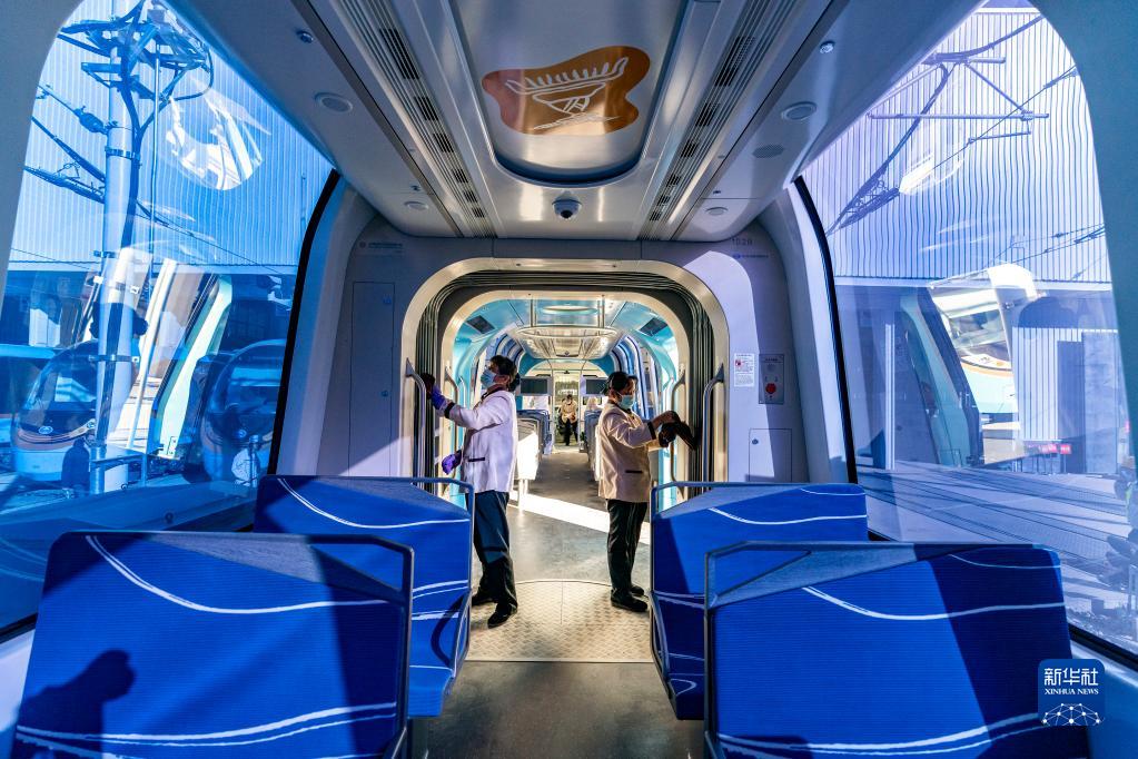 11月27日,在麗江觀(guān)光火車(chē)一期工程車(chē)輛基地,工作人員在清潔車(chē)廂。