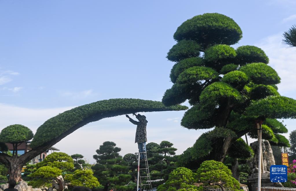 11月28日,在金華市金東區澧浦花木城的天越園藝苗圃?xún)?,種植戶(hù)在修剪樹(shù)木。