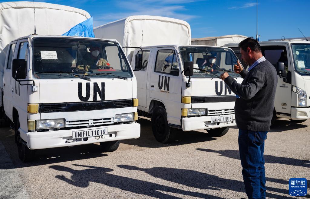 11月28日,核查官員在黎巴嫩南部辛尼亞村的中國維和部隊營(yíng)區檢查車(chē)輛。