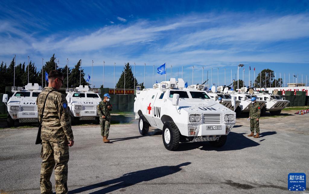 11月28日,核查官員在黎巴嫩南部辛尼亞村的中國維和部隊營(yíng)區檢查車(chē)輛。