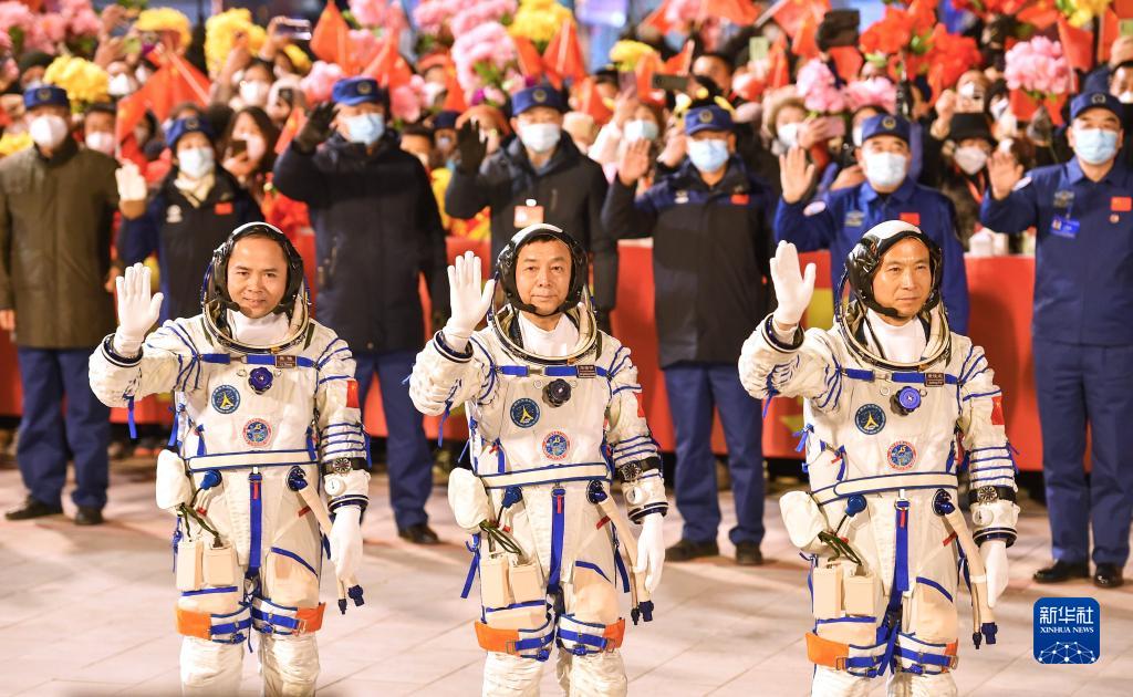 據中國載人航天工程辦公室消息,11月29日20時(shí)18分,神舟十五號載人飛行任務(wù)航天員乘組出征儀式在酒泉衛星發(fā)射中心問(wèn)天閣圓夢(mèng)園廣場(chǎng)舉行。航天員費俊龍(右)、鄧清明(中)、張陸在出征儀式上。
